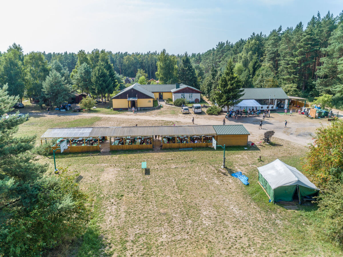 Teren bazy o powierzchni około 4 hektarów jest ogrodzony i w pełni przystosowany do organizacji obozów. Na jego obszarze znajduje się budynek kolonijny, budynek sanitarny, kuchnia z jadalnią pod wiatą, boiska sportowe, namiot Tipi oraz miejsce ogniskowe.